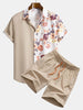Floral Patchwork Print Button Up Shirt & Swim Shorts