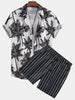 Palm Tree Print Button Up Shirt & Striped Swim Shorts