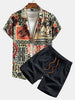 Palm Tree Turtle Ethnic Geometry Print Button Up Shirt & Swim Shorts