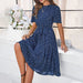 Elevate your style with our 2024 Spring collection, featuring this elegant polka dot chiffon dress. Designed for comfort and leisure, this A-line midi skirt dress boasts a U-shaped collar and short sleeves, perfect for a casual day out.