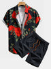 Red Rose Print Button Up Shirt & Swim Shorts