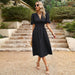 Elevate your summer style with our 2024 collection, featuring this chic A-line midi dress. Crafted for comfort and style, this dress boasts a V-neck and lantern sleeves, perfect for a sweet and fresh look.