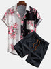 Two Tone Rose Print Button Up Shirt & Swim Shorts